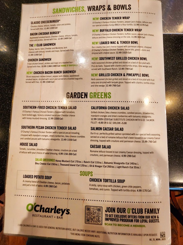 With quick, attentive service emphasized by patrons, O’Charley’s ensures not just a meal, but an exceptional dining experience. Join us for lunch, dinner, or dessert and savor great food, excellent service, and a welcoming ambiance.